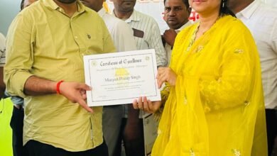 उत्कृष्ट कार्यों के लिए ARP मंजीत प्रताप सिंह हुए सम्मानित, BSA उपासना रानी ने किया…